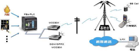 透過(guò)MODEM作LINK FBs-PLC能夠由階梯圖程式自行控制MODEM撥號(hào),與遠(yuǎn)方之MODEM與PLC作Link,無(wú)需操作人員或電腦介入,而達(dá) 成諸如總公司對(duì)各分工廠每日總生產(chǎn)量之自動(dòng)匯整或自動(dòng)資料搜集、警、報(bào)異常回報(bào)等監(jiān)控工作。
