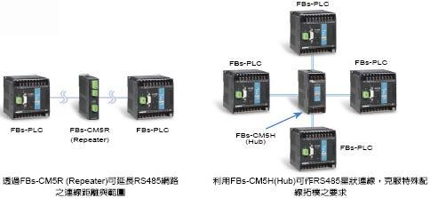 利用RS485中繼器(Repeater)或集線器 (Hub)作長(zhǎng)距離或特殊拓墣連線應(yīng)用 利用永宏所提供之泛用RS-485中繼器或 集線器,可因應(yīng)各種配線拓樸要求(例如Bus結(jié)構(gòu)或星形結(jié)構(gòu))及長(zhǎng)距離通信等特 殊應(yīng)用要求。